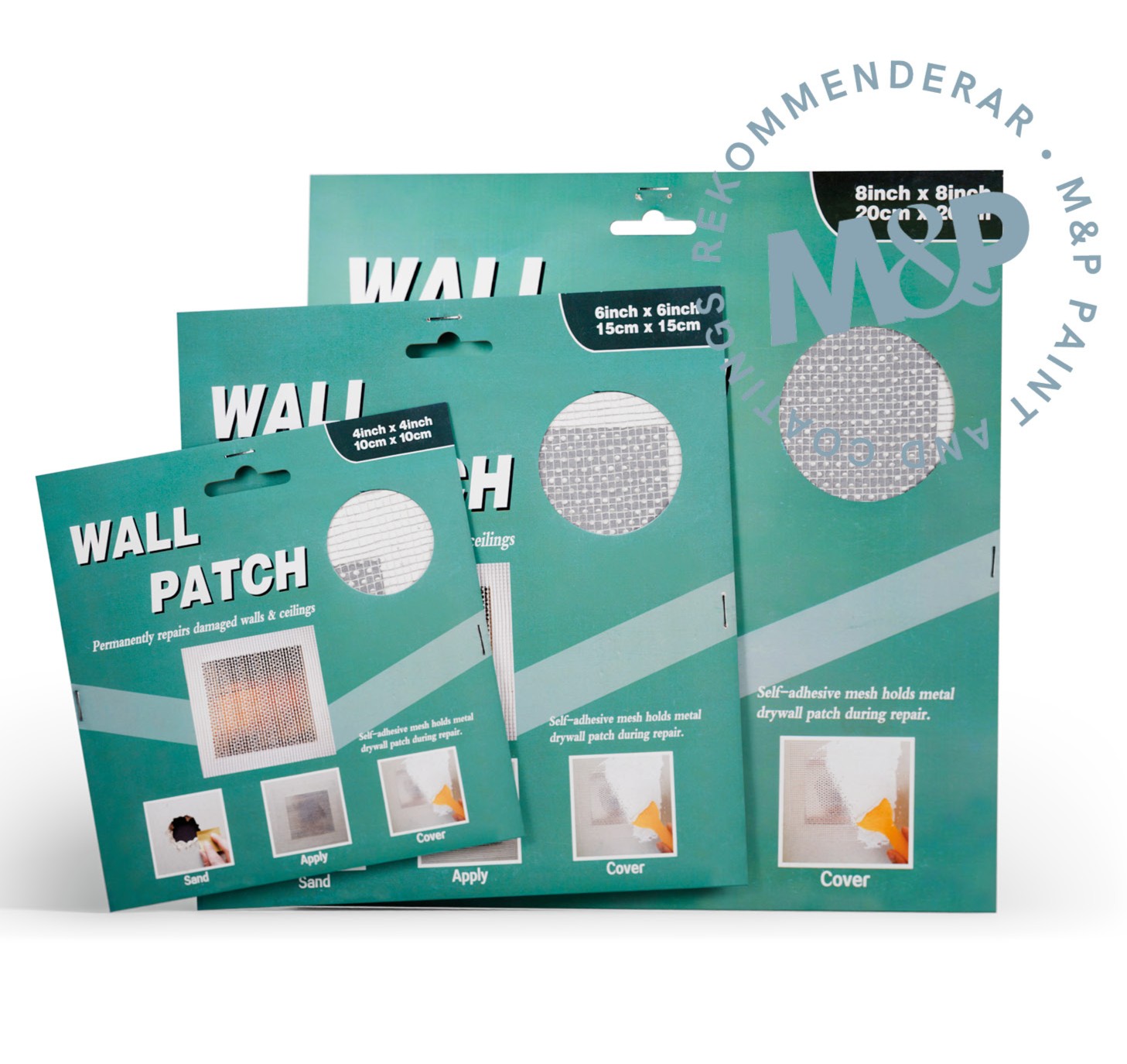 Med Wall Patch lagar du hål i väggar och tak på ett snabbt och enkelt sätt. Metallplattan har ett självhäftande nät på ena sidan, vilket gör det enkelt att sätta den på plats för att sedan spackla.